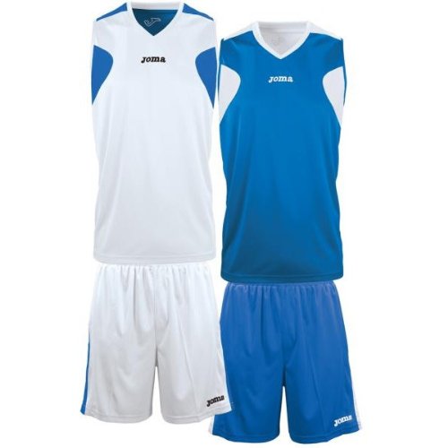 Maillot de BASKET REVERSIBLE JOMA Bleu Royal et Blanc Ensemble Maillot et Short Reversible de Basket-ball Composition : 100% Polyester, Joma DRYMAX Technologie
