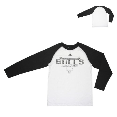 GARÇONS NBA Chicago Bulls Confortable Fit long Jersey T-shirt à manches (Vintage Look) - blanc & noir (Taille: M(10-12) )