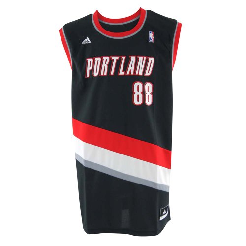 Maillot réplique de Nicolas Batum, numéro 88 de Portland, en matière polyester, de couleur noire, rouge, grise et blanche.